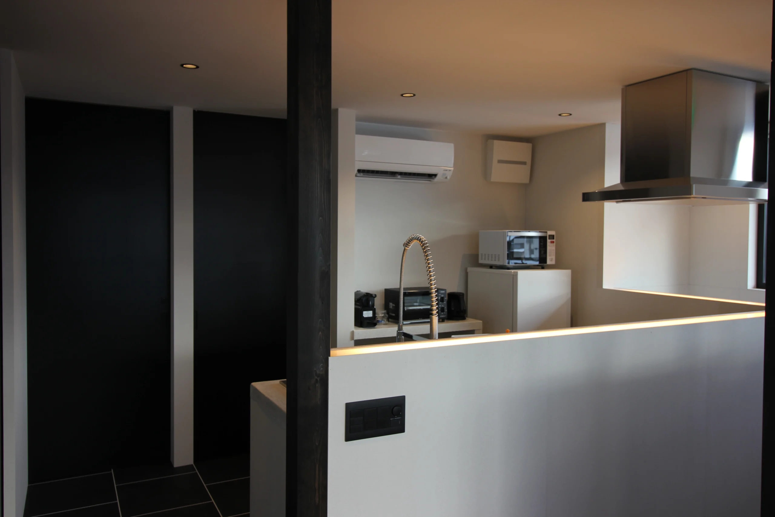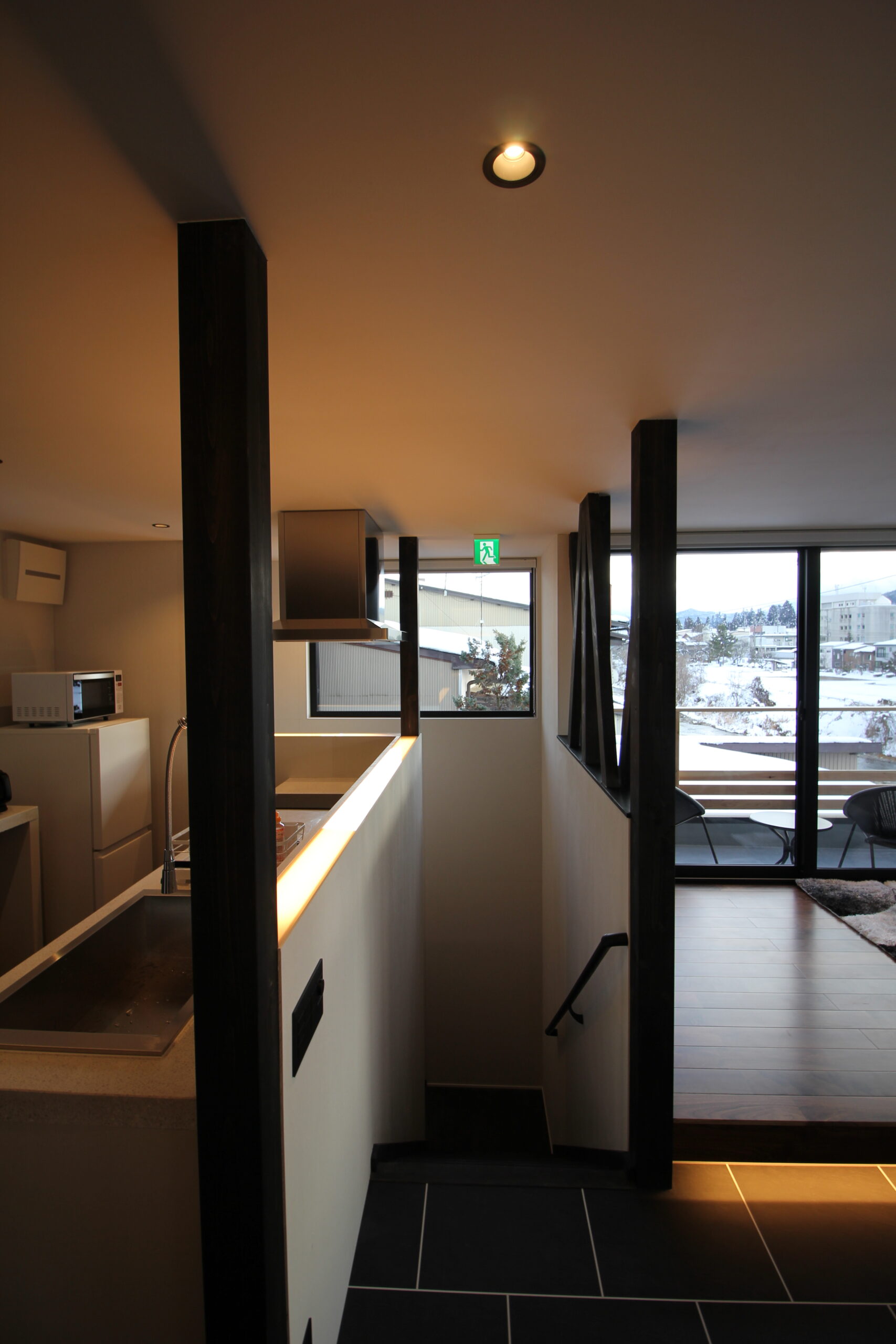 外の景色を楽しむため内装はモノトーンで統一しています。四季折々の自然の景色を十分に楽しめるLDKとゆっくり休めるベッドルームで飛騨高山の旅をより充実したものとします。